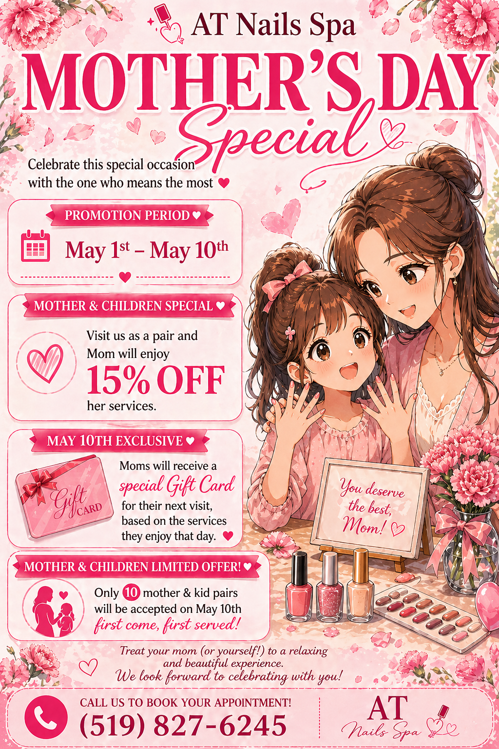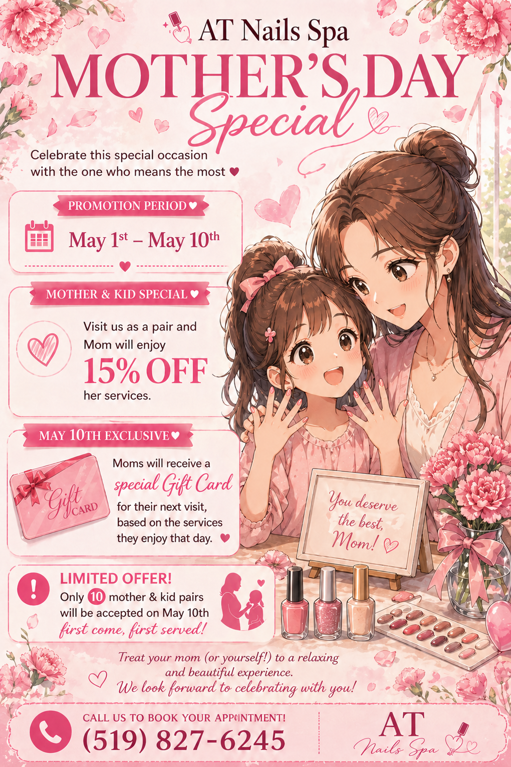 Come and experience our exceptional services at AT Nails Spa. Gift Certificate Available- Appointment & Walk-ins Welcome!